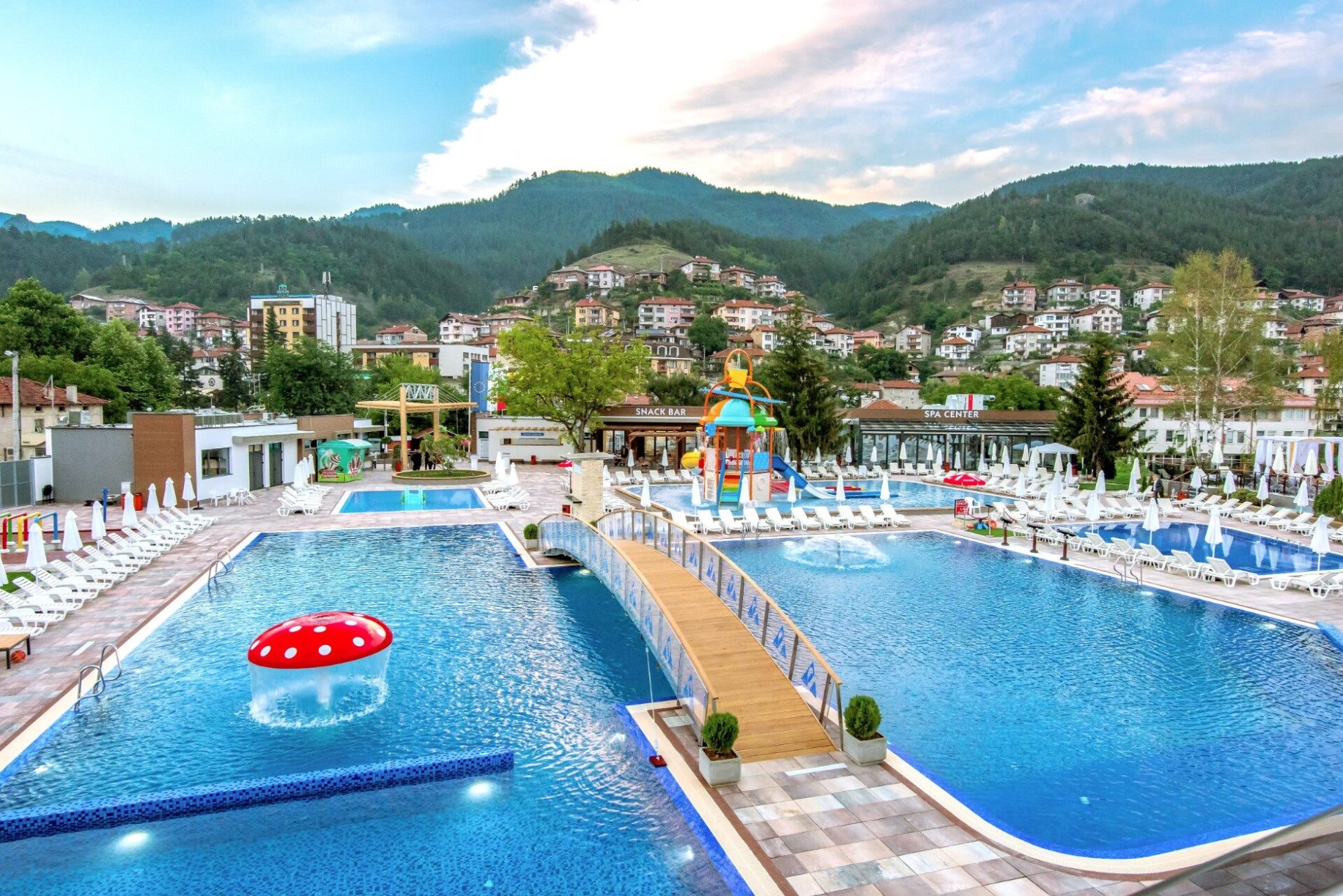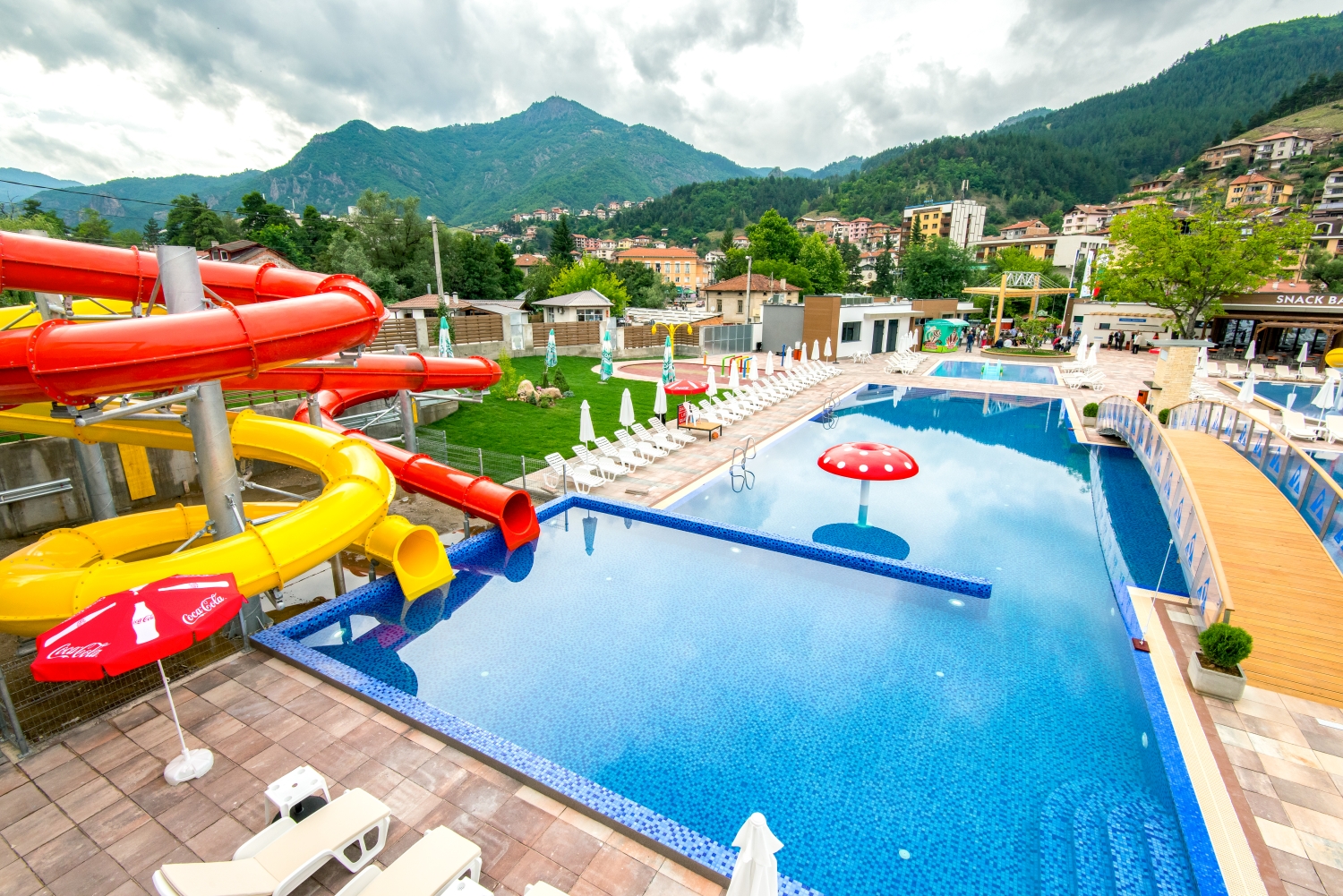 Комплексът е атракционен воден парк, разположен на терен с площ 12000 кв.м. с естествена денивелация от 8м. в центъра на града. Включва шест открити басейна с минерална вода с различна температура – детски, бебешки, развлекателен, басейн с хидромасажи, акватоничен, спортен-плувен с размери 25м/12м и функционално свързаните с тях зони за плажуване и обслужващи сгради: Кула с водни пързалки, обслужваща приемна сграда, Съблекални, Бар-Бърза закуска, два външни бара и барбекю.