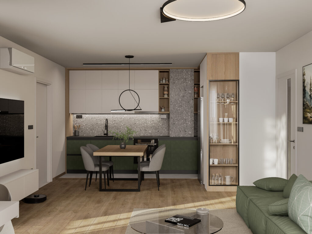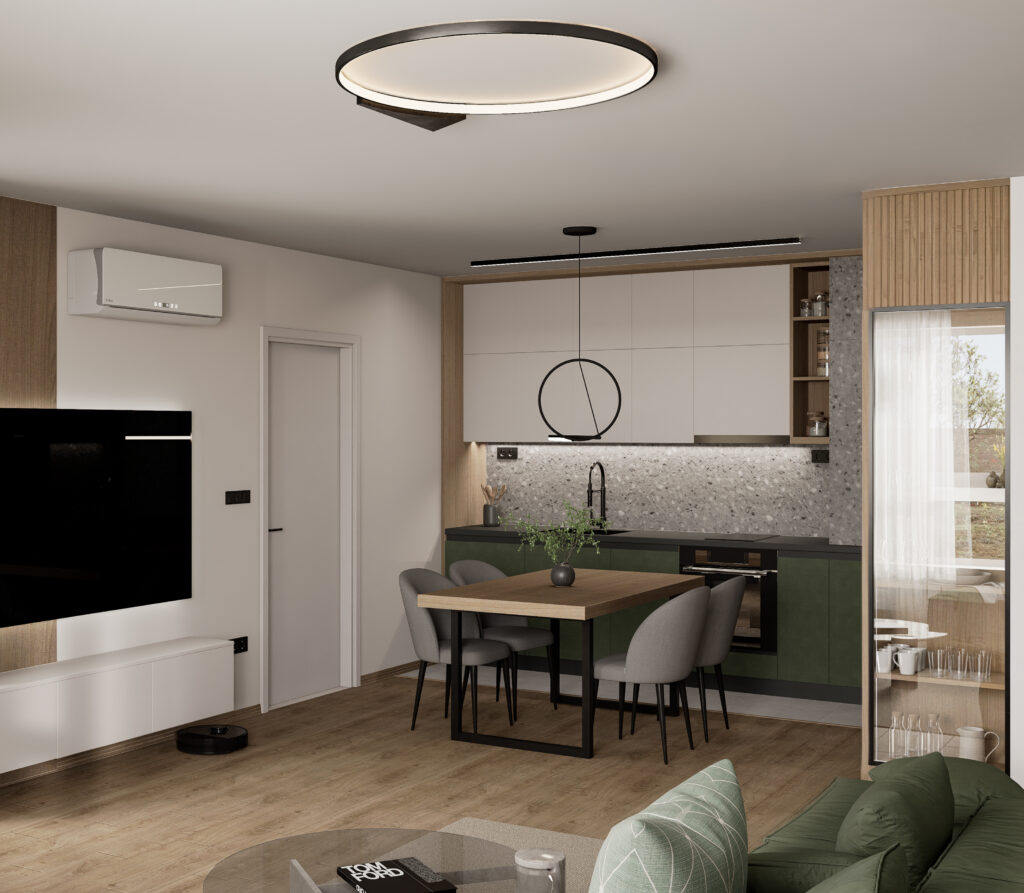 Минималистичният дизайн залага на спокойни цветове, естествени материали и ясно подредено пространство. Всеки детайл е подбран с внимание, за да създаде усещане за хармония, светлина и комфорт без излишни елементи.