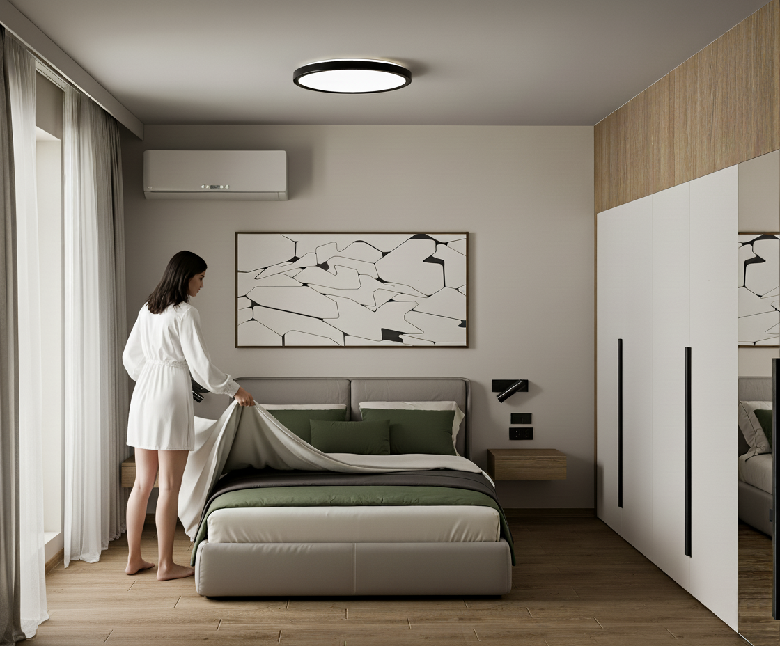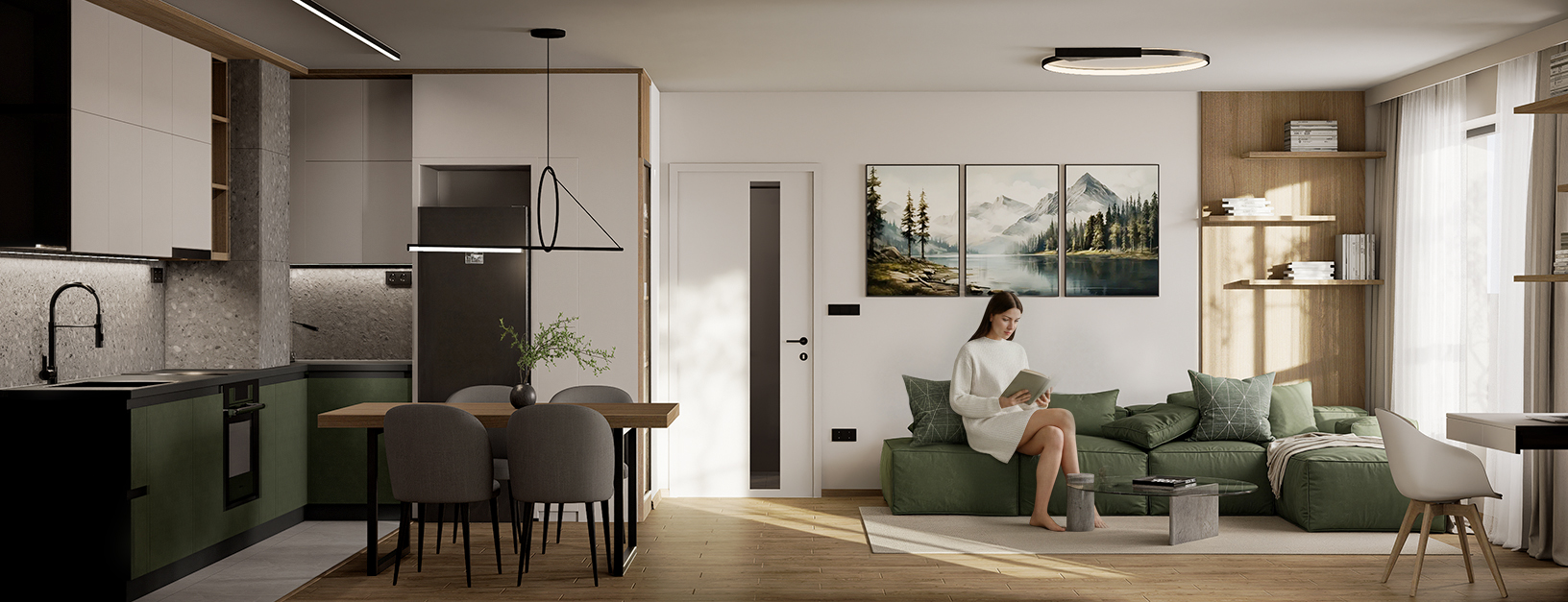 Минималистичният дизайн залага на спокойни цветове, естествени материали и ясно подредено пространство. Всеки детайл е подбран с внимание, за да създаде усещане за хармония, светлина и комфорт без излишни елементи.