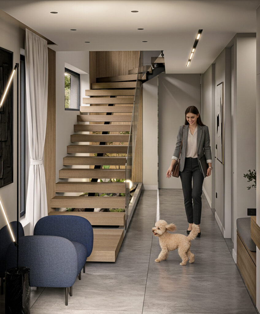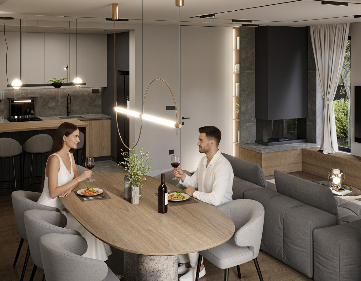 Крайният резултат е хармоничен, съвременен интериор с подчертана индивидуалност, създаден като дългосрочна и устойчива среда за живот.